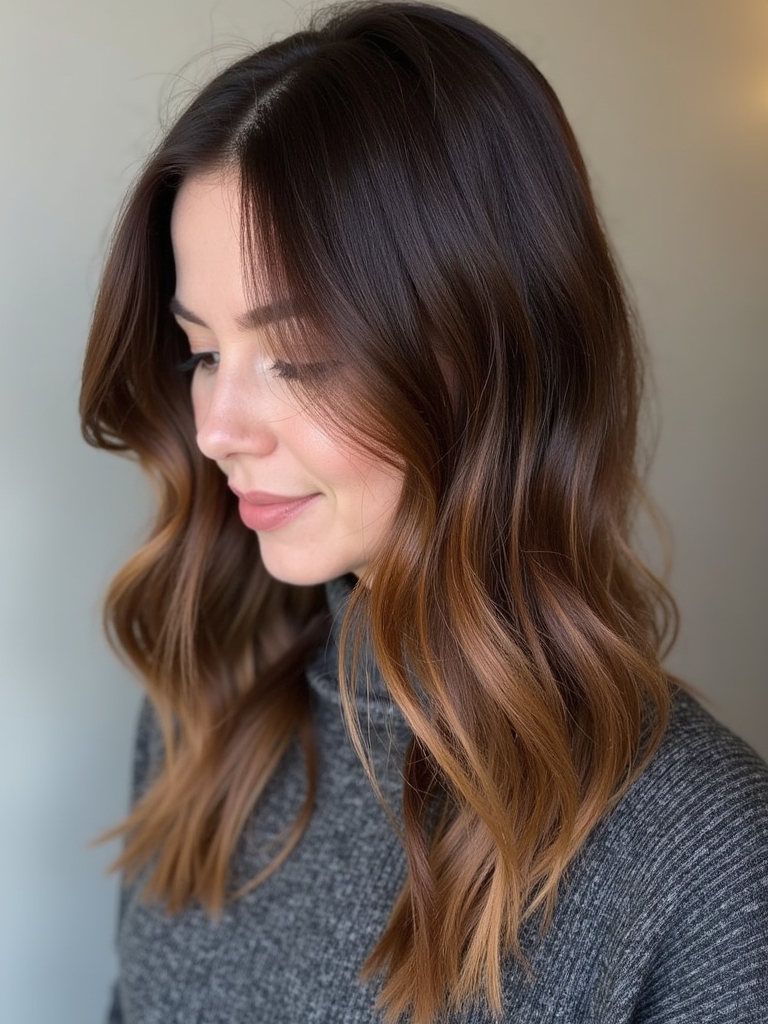 Transition into Fall with a smoky ombre on your Fall Brown Hair. This gradient color technique involves seamlessly blending a dark brown base into lighter, cooler-toned ends. The transition should be smooth and subtle, creating a smoky effect that’s both modern and sophisticated. This style is particularly flattering on long Hair, as it allows for a more dramatic gradient. To achieve the smoky effect, ask your stylist for cool-toned browns, grays, and even hints of lavender or silver at the ends. This will create a multi-dimensional look that’s both edgy and elegant. It is a classic choice for Hair For Brunettes. To explore this more, look at Fall Hair 2025. For more references, consider Hair Inspo For Brunettes. This is also a good Hair Color. Explore Low Light Brown Hair to add depth to your style. Styles inspired by Taylor Paul Hair trends may also offer ideas. This is also inspired by Dark Brown Hair With Light Brown BaylageBrown Baby Lights is also a nice touch.