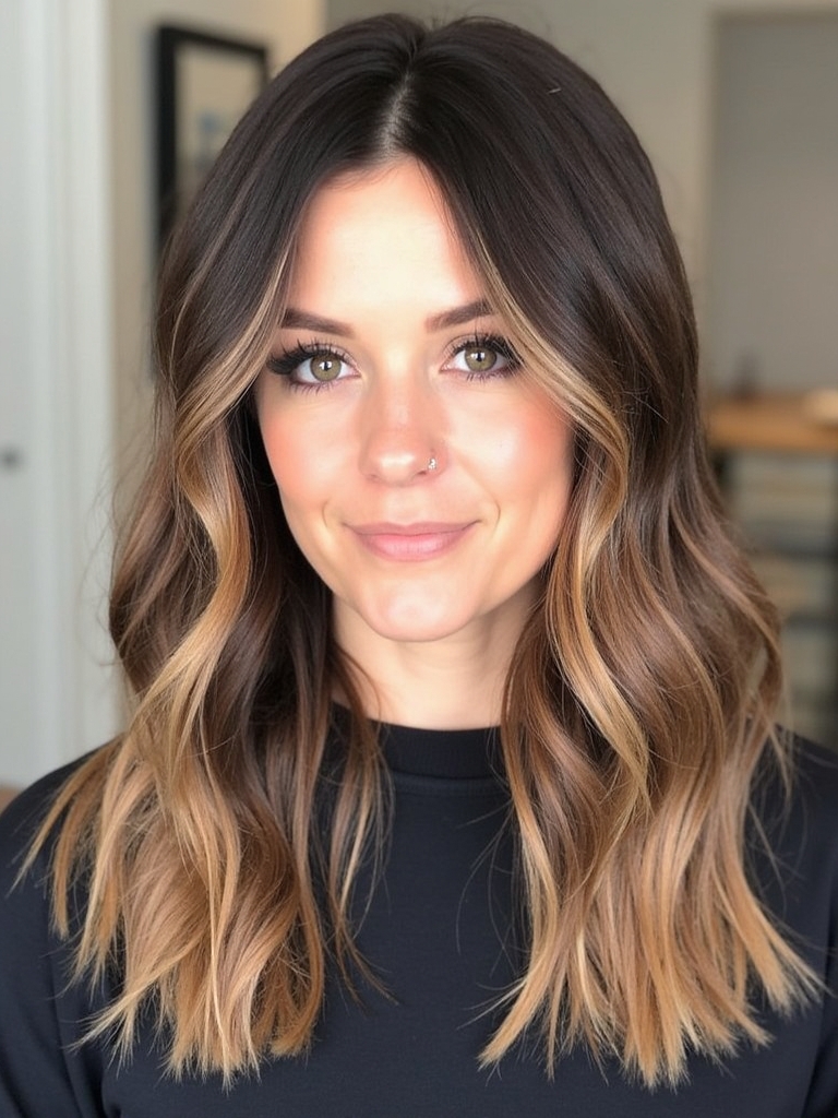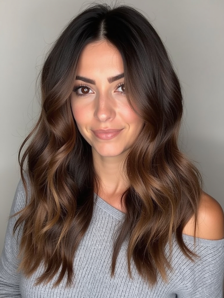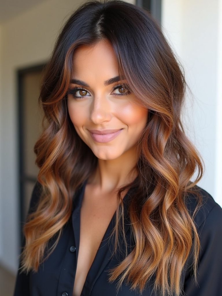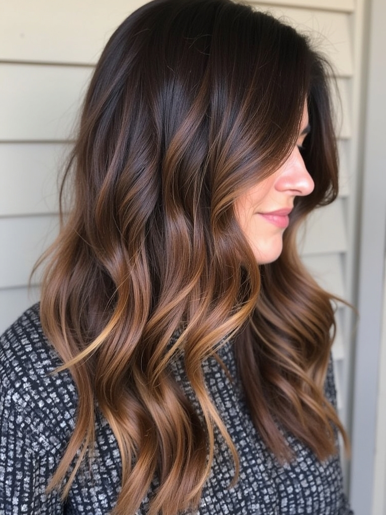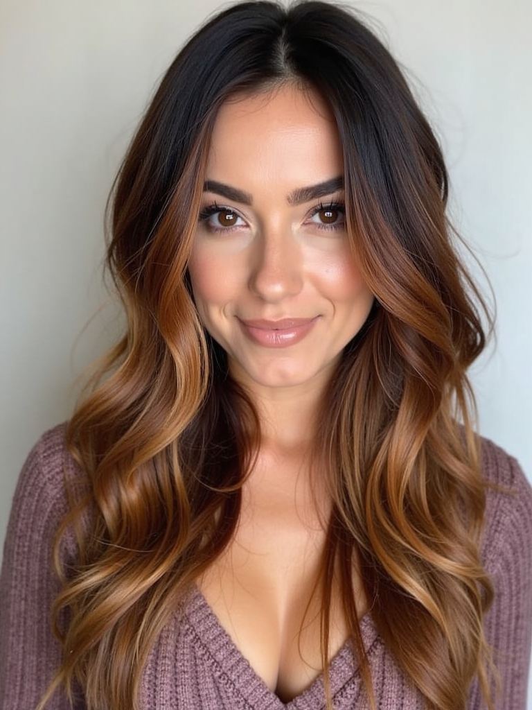 Embrace the warmth of autumn spices with a cinnamon-infused Brunette Balayage Hair. This style is perfect for those seeking Fall Highlights For Brown Hair that are both subtle and impactful. Imagine your Rich Brunette Hair enhanced with ribbons of warm cinnamon tones, creating a multi-dimensional look. This is a fantastic way to incorporate Fall Hair Color Trends while keeping your base color rich and dark. It’s an excellent choice for Dark Hair Color Ideas that still offer a touch of playfulness. For those who love Dark Caramel Balayage, cinnamon spice is a beautiful variation, adding warmth and vibrancy to your overall look. A touch of Warm Honey Blonde highlights can be strategically placed to brighten your complexion. Follow Fall Hair Trends 2025 and stay stylish with the latest brunette style. It’s a great way to experiment with Hair Color Ideas For Brunettes that are both modern and timeless. Spice up your Dark Fall Hair with this stunning balayage that complements your natural beauty.