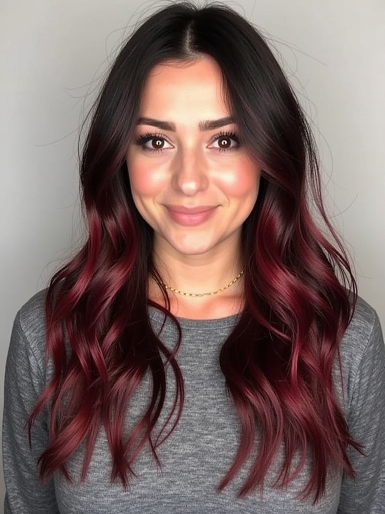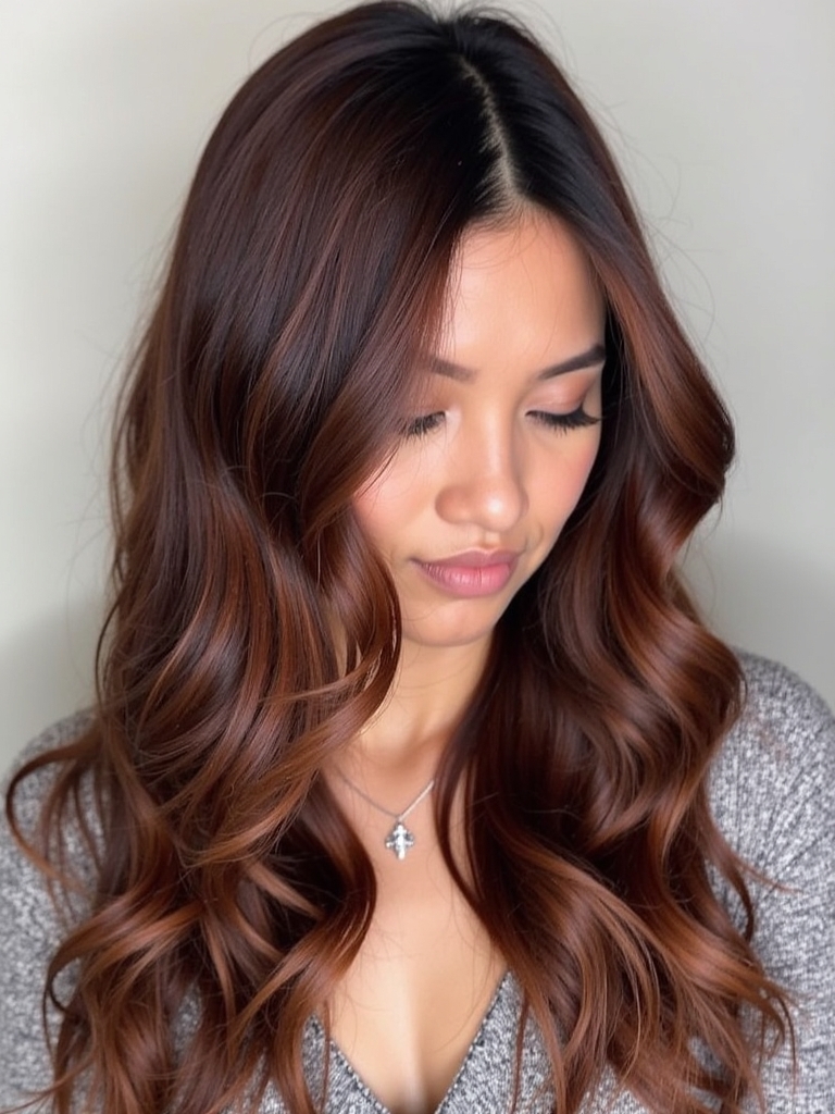 Indulge in the delightful Chocolate Cherry Swirl for your next Fall Hair Colors For Brunettes. This sweet and sophisticated blend adds depth and richness to your Rich Brunette Hair, creating a captivating and unforgettable look. With the move from the usual Dark Hair Color Ideas, Chocolate Cherry Swirl introduces subtle red and brown undertones, offering depth and intrigue. A subtle infusion of Fall Highlights For Brown Hair in cherry hues gives a stunning Brunette Balayage Hair effect. It fits into the popular Fall Hair Trends 2025, promising a chic and modern appearance. With more dimension, a Dark Caramel Balayage could be infused, adding light and shadow in all the right places. For a sun-kissed effect, you could even consider adding a touch of Warm Honey Blonde to the tips of your hair. The possibilities are endless with Hair Color Ideas For Brunettes, and Chocolate Cherry Swirl is a delicious and wearable choice. The color is unique, giving your Dark Fall Hair flair and dimension, perfectly embodying the excitement of Fall Hair Color Trends.