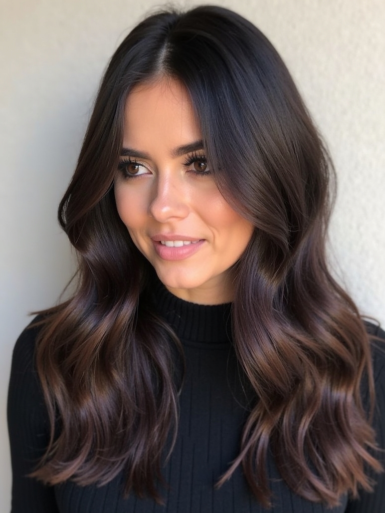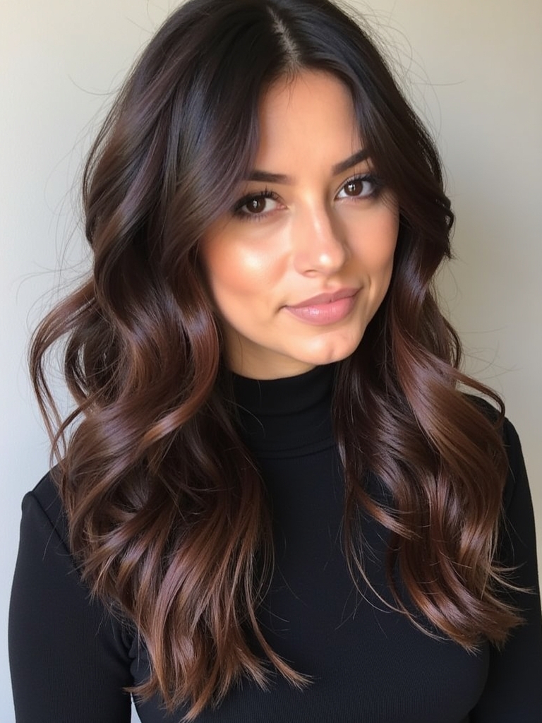 Add a touch of mystery and intrigue with deep plum undertones to your Fall Hair Colors For Brunettes. This unexpected hue adds a unique twist to Rich Brunette Hair, creating a captivating and sophisticated look. It’s a bold alternative to traditional Dark Hair Color Ideas, offering a subtle yet noticeable change. Incorporating Fall Highlights For Brown Hair with plum or violet hues is a stylish way to achieve a Brunette Balayage Hair effect. Deep plum undertones are in line with Fall Hair Trends 2025, offering a contemporary and fashion-forward style. Consider incorporating a Dark Caramel Balayage with plum undertones for added depth and dimension. A subtle touch of Warm Honey Blonde highlights can be added for contrast and brightness. These are sophisticated Hair Color Ideas For Brunettes that enhance your natural beauty and create a memorable impression. Enhance your Dark Fall Hair with this stylish option and keep in line with Fall Hair Color Trends.